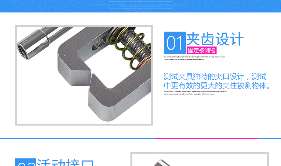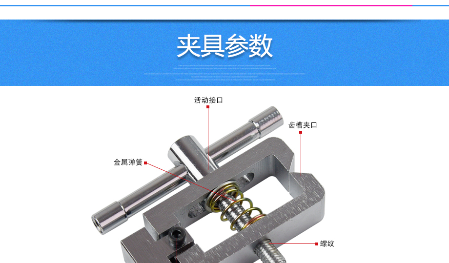 產品型號:JQ-025 品牌:劍 喬 用途:尖口端子夾具適用范圍:橡膠、各種線纜、紙、各種電器元件、塑料薄膜等材料的拉力,破壞力測試。